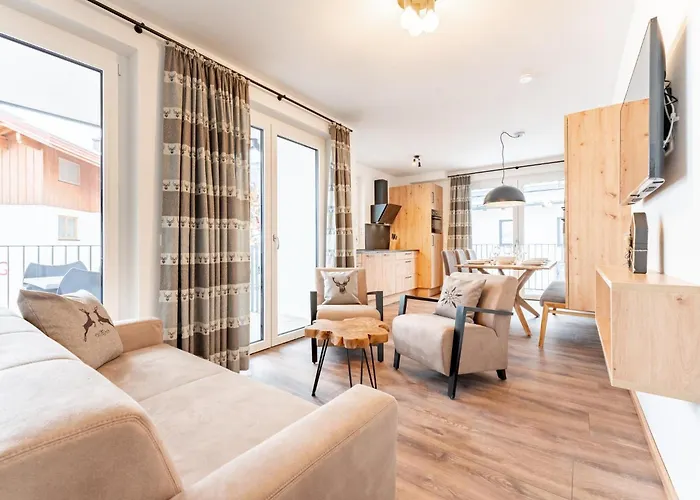 Falken Suites Top 5 Kaprun van 57 m² bevinden zich binnen 11 minuten wandelen van de Maiskogel en bieden Wi-Fi. Het 2-slaapkamer appartement beschikt over een golfbaan, perfect voor gasten die graag actief blijven.